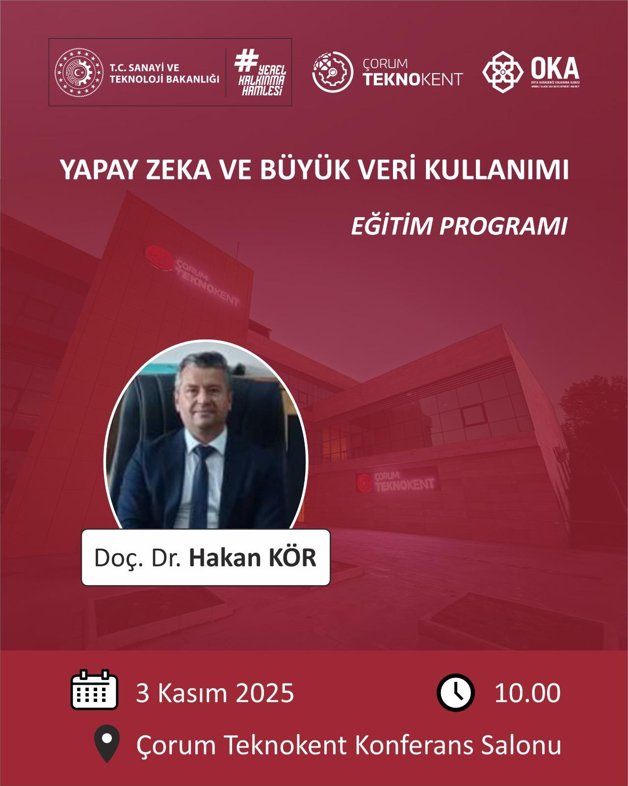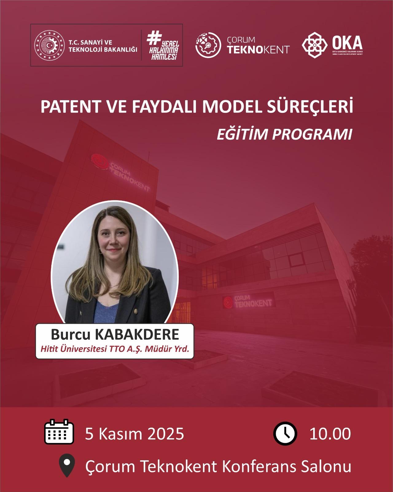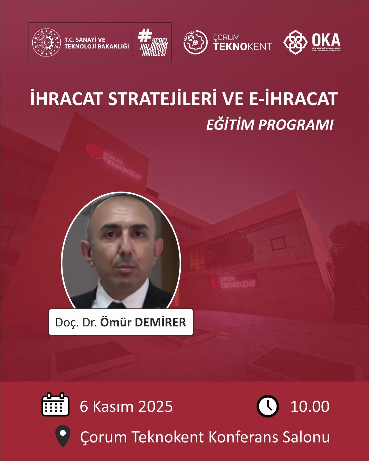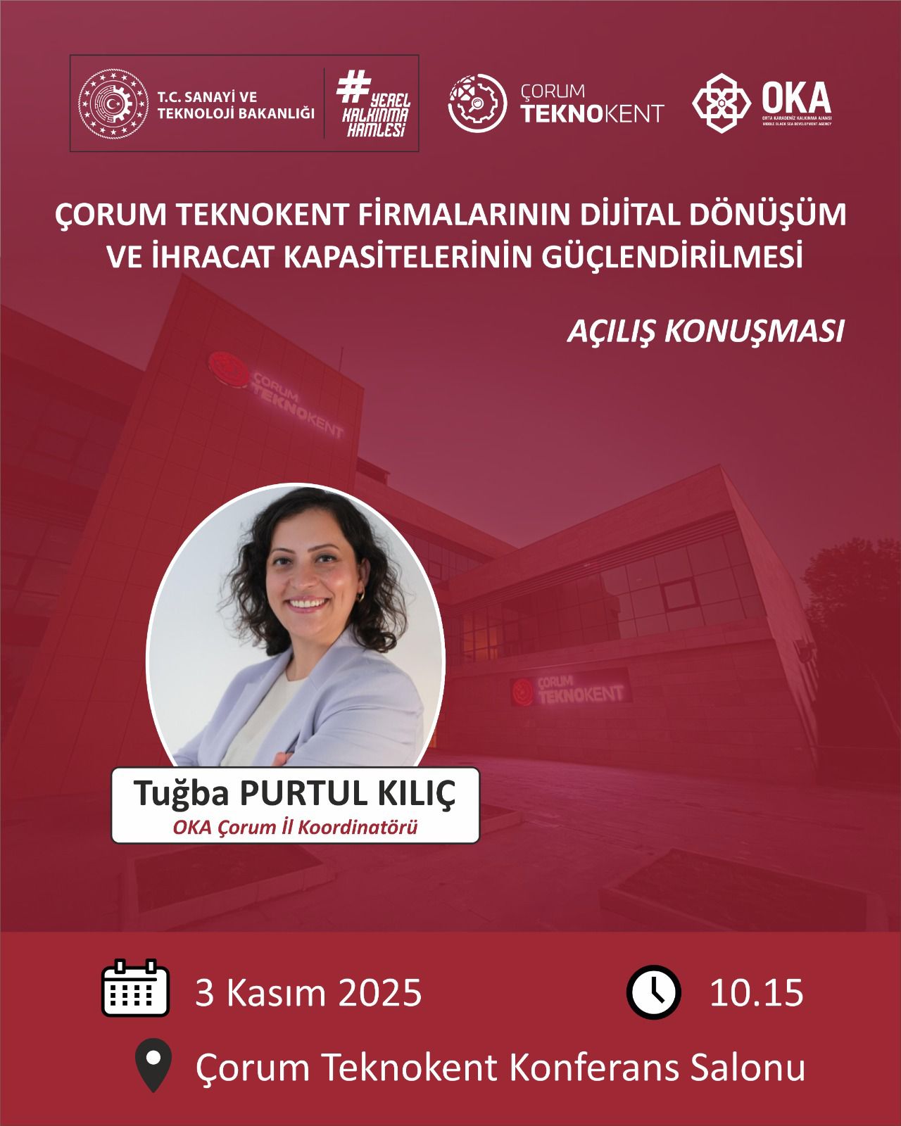 📢 Orta Karadeniz Kalkınma Ajansı (OKA) tarafından desteklenen “Çorum Teknokent Firmalarının Dijital Dönüşüm ve İhracat Kapasitelerinin Güçlendirilmesi” projesi başlıyor. 2025 Yılı İhracatta İkiz Dönüşüm Teknik Destek Programı kapsamında düzenlenen eğitim serisi 3 Kasım Pazartesi günü başlıyor! 🚀 Açılış Konuşmaları: Prof. Dr. Ali Osman ÖZTÜRK Hitit Üniversitesi Rektörü | Çorum Teknokent Yönetim Kurulu Başkanı Tuğba PURTUL KILIÇ OKA Çorum İl Koordinatörü 📅 Eğitim Programı: 📍 Yer: Çorum Teknokent Konferans Salonu 🎓 Eğitimlere Düzenli Katılanlara Sertifika Verilecektir. 3 Kasım 2025 – Doç. Dr. Hakan KÖR Konu: Yapay Zeka ve Büyük Veri Kullanımı Saat: 10.30 4 Kasım 2025 –Yasemin TOSUN Konu: Dijital Pazarlama Saat: 10.00 5 Kasım 2025 –Burcu KABAKDERE (Hitit Üniversitesi TTO A.Ş. Müdür Yrd.) Konu: Patent ve Faydalı Model Süreçleri Saat: 10.00 6 Kasım 2025 – Doç. Dr. Ömür DEMİRER Konu: İhracat Stratejileri ve E-İhracat Saat: 10.00 Dijital dönüşümden e-ihracatauzanan bu dört günlük eğitim serisine tüm firmalarımız davetlidir.