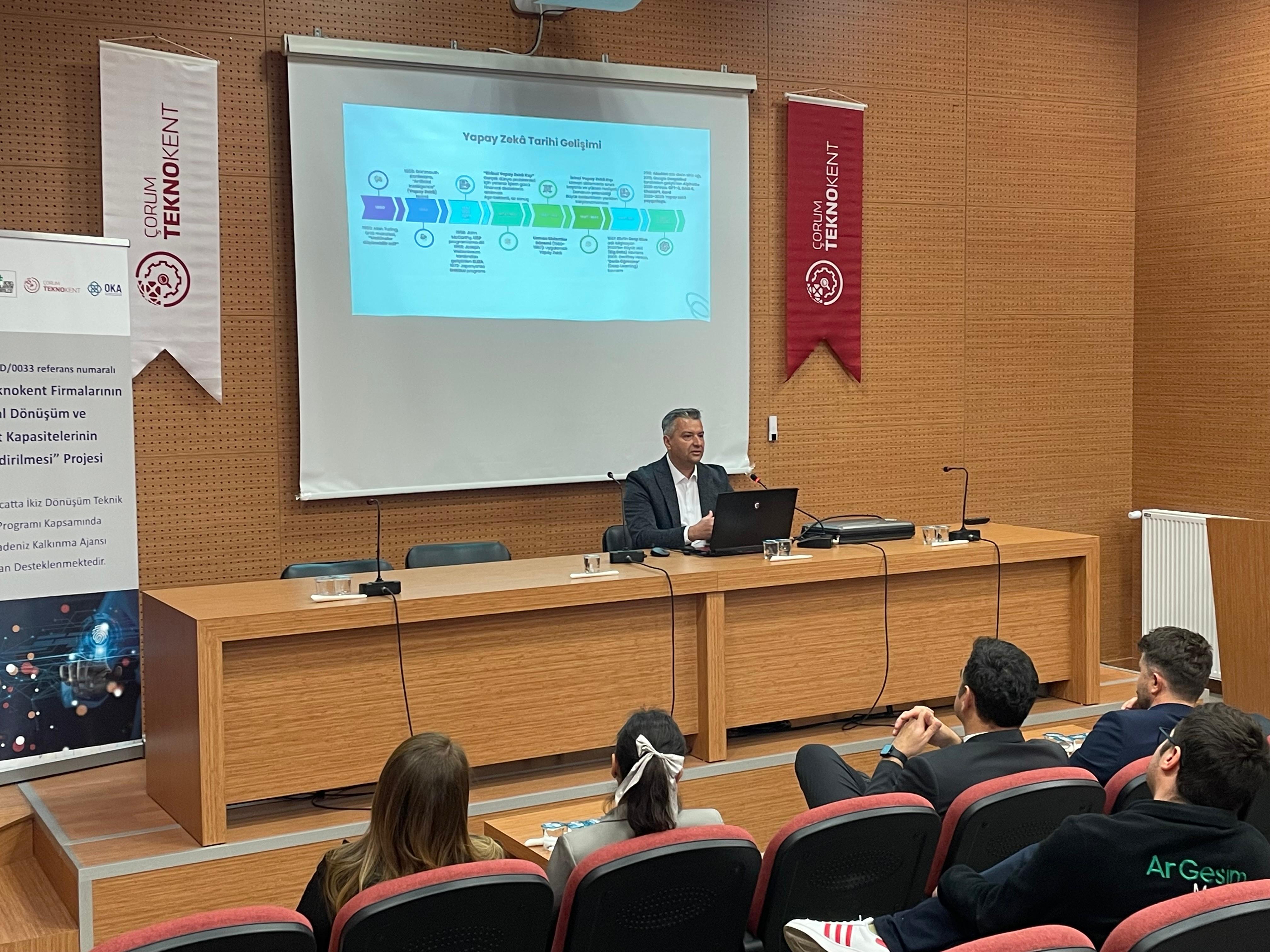 Orta Karadeniz Kalkınma Ajansı tarafından desteklenen “2025 Yılı İhracatta İkiz Dönüşüm Teknik Destek Programı” kapsamında yürütülen “Çorum Teknokent Firmalarının Dijital Dönüşüm ve İhracat Kapasitelerinin Güçlendirilmesi” projesinin eğitim bölümü bugün açılış konuşmalarıyla başladı.